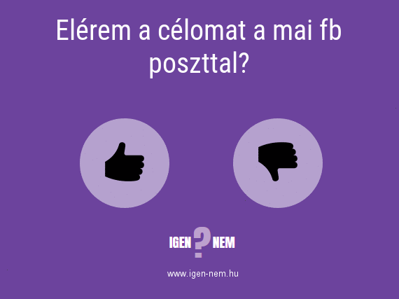 Elérem a célomat a mai fb poszttal? IGEN? NEM? | igen-nem.huA kérdésre még senki nem adott le szavazatot.