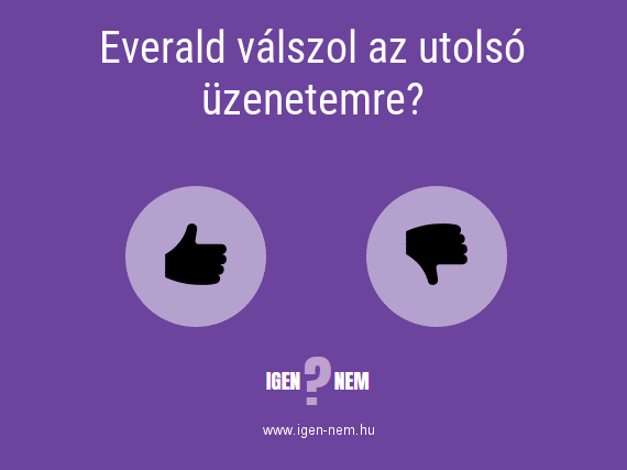 Everald válszol az utolsó üzenetemre? IGEN? NEM? | igen-nem.huA kérdésre még senki nem adott le szavazatot.