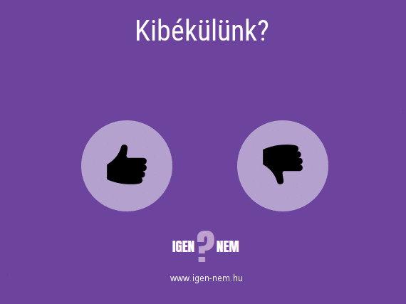 Kibékülünk? IGEN? NEM? | igen-nem.huA válaszadók 100%-a mondta, hogy IGEN. Eddig 2 szavazat érkezett.