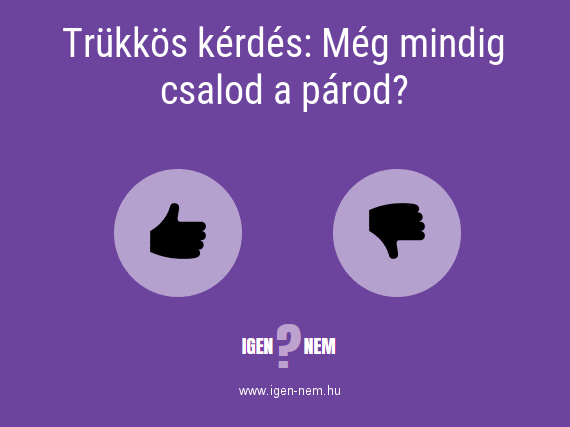 Trükkös kérdés: Még mindig csalod a párod? IGEN? NEM? | igen-nem.huA kérdésre még senki nem adott le szavazatot.